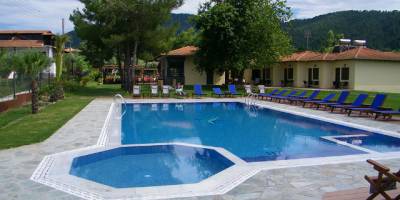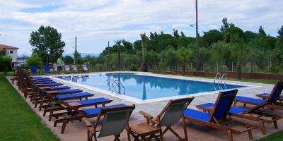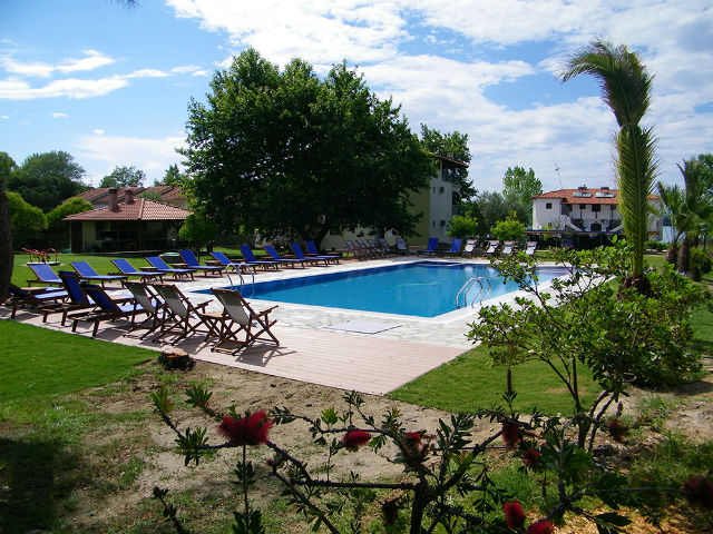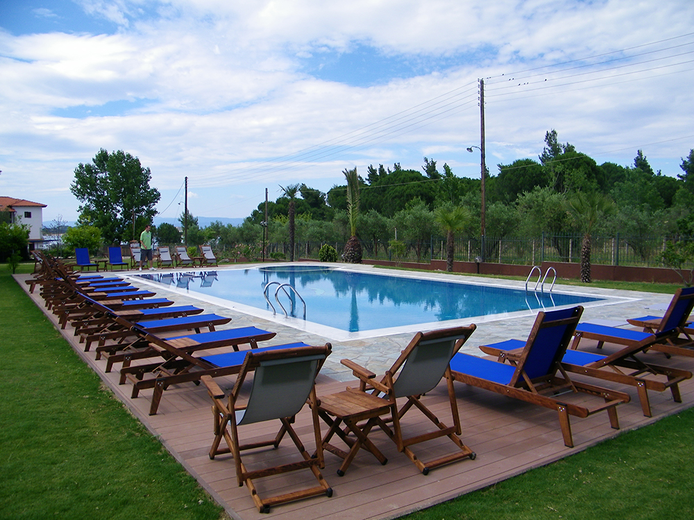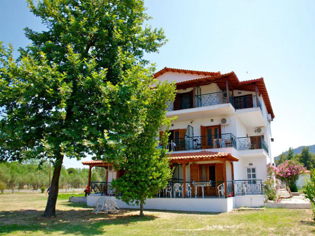 Nalazi se na oko 20m od obale Vurvurua gde je gostima na raspolaganju ograničen broj suncobrana i ležaljki. Kuća ima prelepo dvorište sa puno zelenila i roštiljem, parking i skoro pa privatnu plažu. U dvorištu kuće se u nalazi bazen sa suncobranima i ležaljkama. Studiji i apartmani se nalaze u glavnoj zgradi. Svi imaju SAT TV, signal za bežični internet, kao i klima uredjaj čije je korišćenje uključeno u cenu. Čišćenje apartmana i studija je svakodnevno. Kuća se nalazi na oko 600m od Karidi plaže, jedne od najlepših plaža Sitonije.