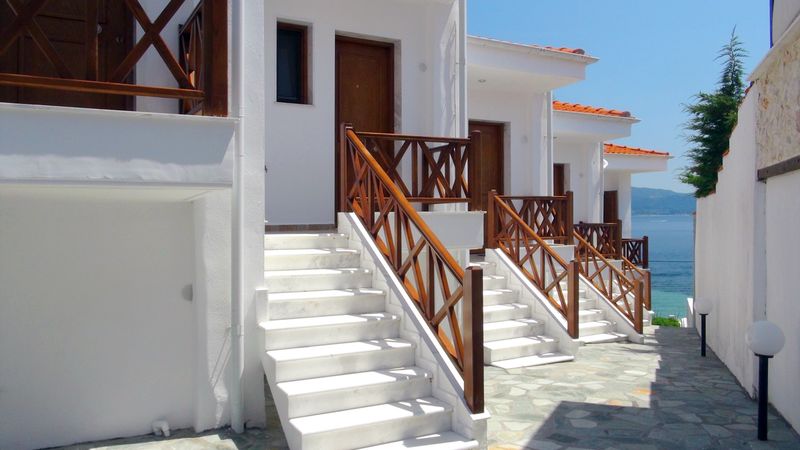 Izgrađena pre nekoliko godina u duhu tradicionalne grčke arhitekture. Vila je idealna za one koji ne žele da su u centru, već svoj odmor žele da provedu u miru na samo nekoliko metara od mora i najbliže plaže. Nalazi se na raskranici puteva, koji vode do dve najpoznatije plaže na ostru, Alikes i Megali Ammos. Smeštena je u prelepom ambijentu, na laganom uzvišenju, tako da se sa terasa svih studija pruža očaravajući pogled na more, poluostrvo Atos i nebeski grad Uranopolis. Prema strukturi smeštajnih jedinica, idealna je za parove ili za porodice sa jednim detetom. U dvorištu vile nalazi se parking.