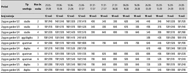 | Cena paket aranžmana označenog sa * je ista bez obzira na mesto polaska, osim iz Niša gde se cena paket aranžmana umanjuje za 10 eur-a po osobi | |||