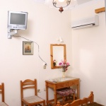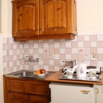 Vila Marinos smestena je na 200 m od plaže i na oko 500 m od centra Laganasa. Vila raspolaže dvokrevetnim i trokrevetnim studijima koji su opremljeni čajnom kuhinjom, kupatilom, terasom. Poseduju klima uređaj (doplaćuje se 5 eur-a dnevno), sef (dopata 1 eur-o dnevno), TV. Gostima vile dostupan je i Wi-Fi internet. Studiji se nalaze na prvom spratu.