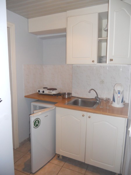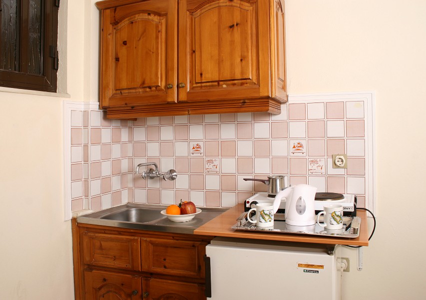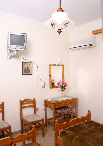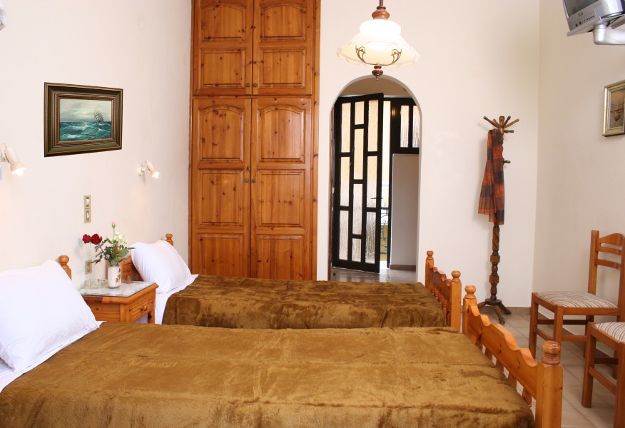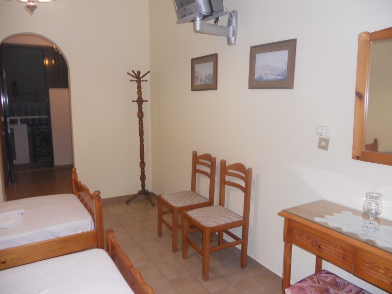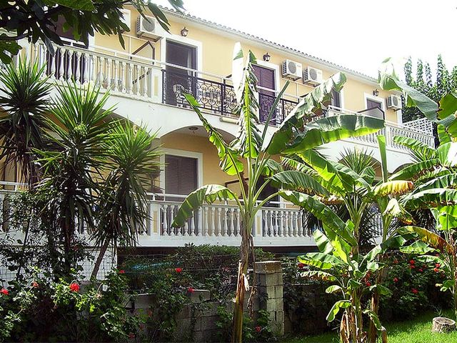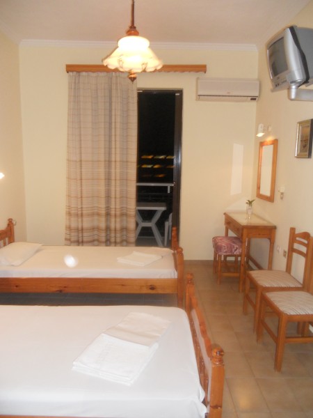 Vila Marinos smestena je na 200 m od plaže i na oko 500 m od centra Laganasa. Vila raspolaže dvokrevetnim i trokrevetnim studijima koji su opremljeni čajnom kuhinjom, kupatilom, terasom. Poseduju klima uređaj (doplaćuje se 5 eur-a dnevno), sef (dopata 1 eur-o dnevno), TV. Gostima vile dostupan je i Wi-Fi internet. Studiji se nalaze na prvom spratu.