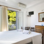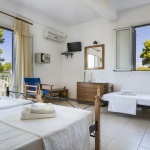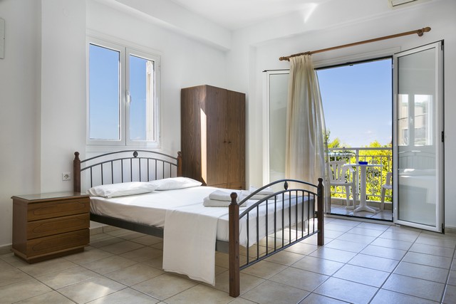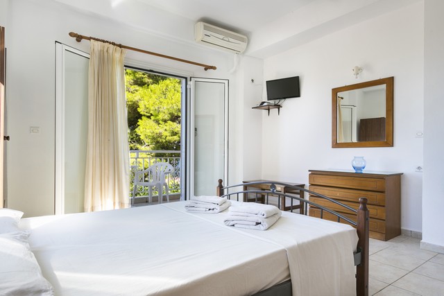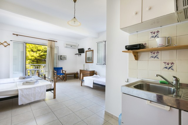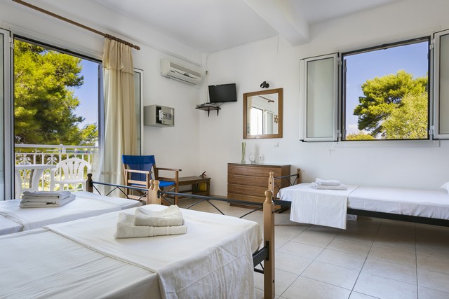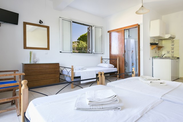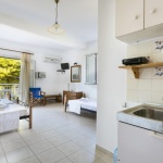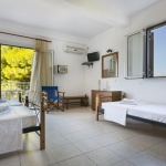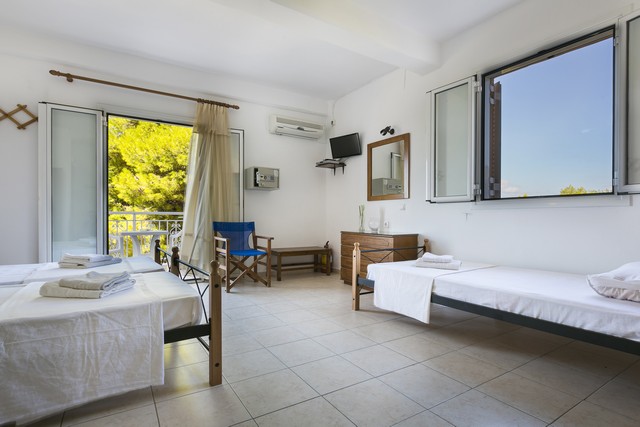 Opis: Vila Angeliki raspolaže dvokrevetnim i trokrevetnim studijima, četvorokrevetnim apartmanima, kao i četvorokrevetnim i petokrevetnim mezonetama. Jedan od studija ima prolaznu terasu, u cenovniku je obeležen sa p.t., i prodaje se po nešto nižoj ceni. Četvorokrevetni apartmani se nalaze u prizemlju, dok se mezonete nalaze na sparatu. Smeštajne jedinice poseduju kompletno opremljenu čajnu kuhinju u okviru sobe, kupatilo (tuš/WC), TV i balkon. Svaka smeštajna jedinica raspolaže klima-uređajem čije se korišćenje doplaćuje na licu mesta (5 € dnevno po studiju). Ova doplata nije obavezna. Vila ima peškire, sef čije je korišćenje uračunato u cenu kao i besplatnu wi-fi internet konekciju. Poseduje parking.