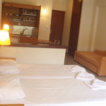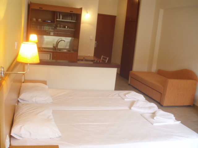 Smeštaj: Trokrevetni studiji su prostrani, imaju francuski ležaj i sofu. U četverokrevetnim studijima uz francuski ležaj ima i ležaj na rasklapanje za dve osobe. Apartmani se sastoje od dve prostorije; u jednoj je francuski ležaj, a u drugoj krevet na rasklapanje za dve osobe i kuhinjski deo. Svaka smeštajna jedinica ima opremljenu kuhinju sa elementima i posuđem za osnovno pripremanje i konzumiranje hrane za predviđeni broj osoba, kupatilo sa TWC-om, terasu, TV i klima uređaj.