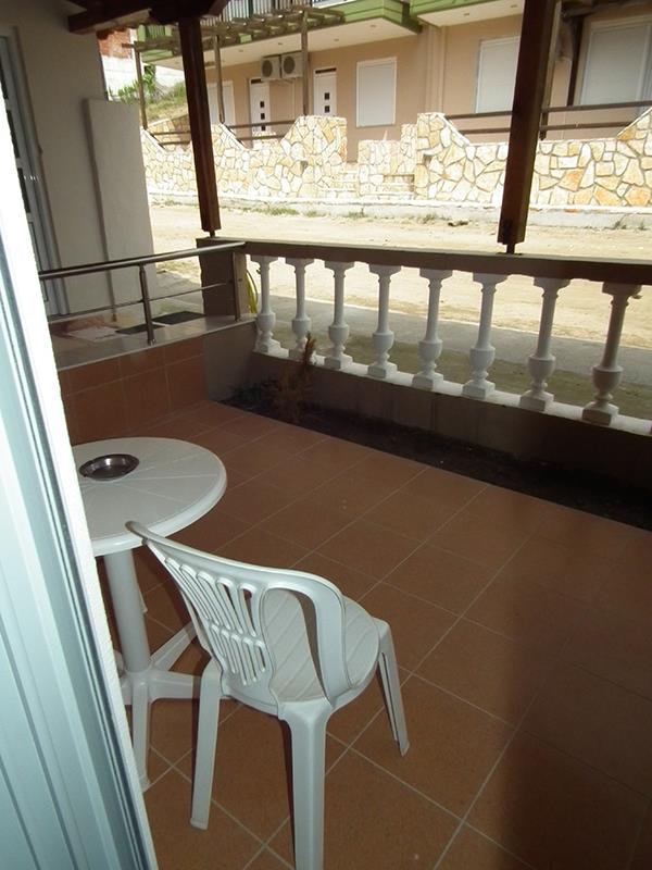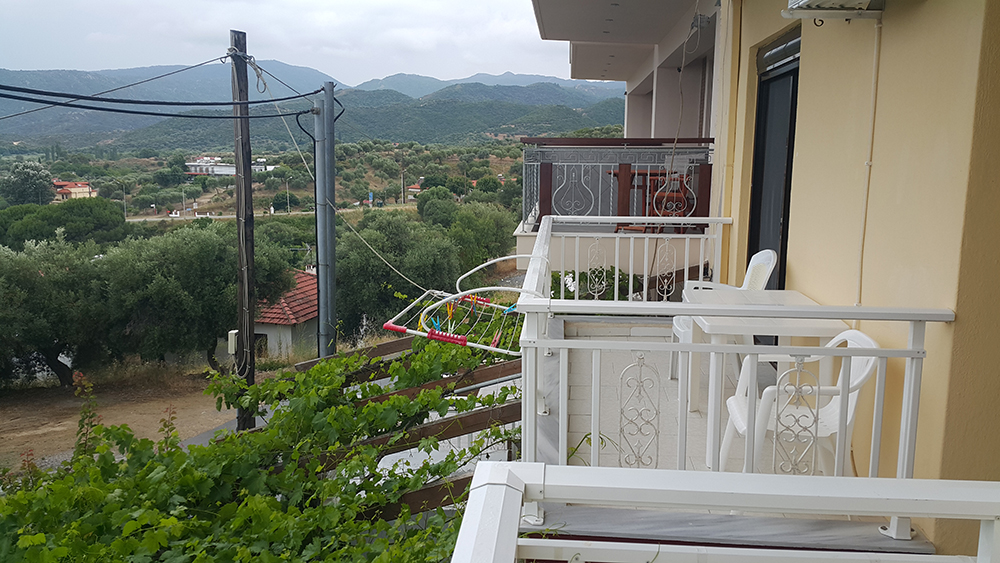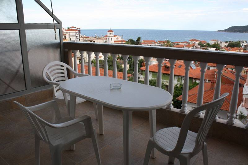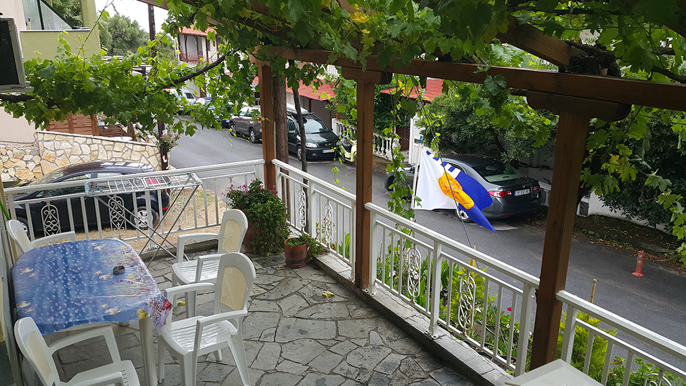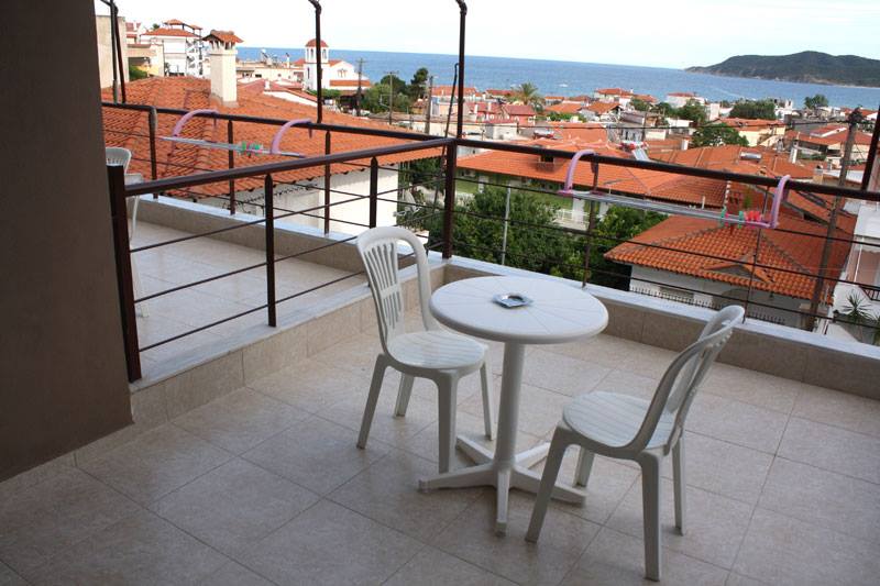 Nalazi se u starom delu Sartija na uzvišenju blizu crkve na oko 250m od gradske plaže, a isto toliko i od najbližih uvala. Na samo 120m od centra, a opet daleko od buke i vreve. Nudi signal za internet, SAT TV kao i klima uređaj čije je korišćenje uključeno u cenu. Svi imaju prostrane terase, a većina studija ima neverovatan panoramski pogled na more i ceo Sarti.Apartmani 6,8,9 i 11 možda narednog leta neće imati pogled na more. Ukoliko je to glavni razlog zašto se odlučujete za ovu kuću izaberete apartmane na višim spratovima ili se odlučite za drugu kuću.
