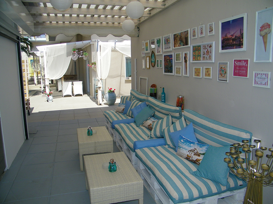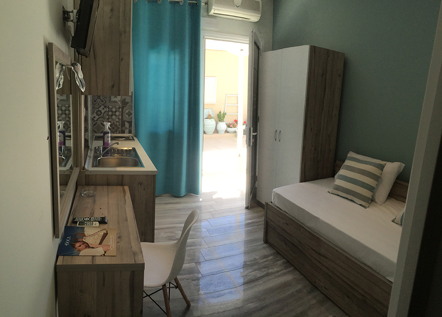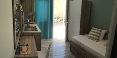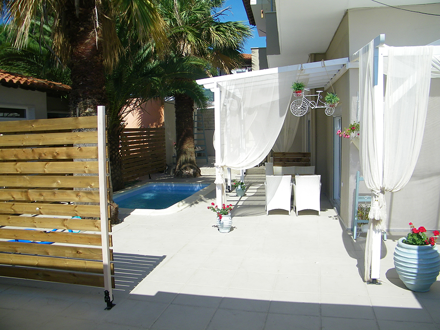 Nalazi se u starom delu Sartija, na oko 290m od mora, na uzvišenju blizu crkve. U ponudi su prostrani studiji za 2-4 osobe kao i family room za do 6 osoba. Smeštaj je na nivou visokog prizemlja, prvog i drugog sprata. Svi imaju TV, signal za besplatno korišćenje bežicnog interneta kao i klima uređaj čije se korišćenje posebno doplaćuje.U ponudi je i family room koji predstavlja dva studija sa zasebnim ulazima, gde svaki ima svoju kuhinju, kupatilo, TV i klimu, a jedino imaju prostranu zajedničku terasu. Idealan za smeštaj dve porodice koje se druže, visečlanih porodica, društva mladih…