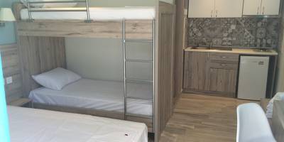 Slike kreveta, frižidera i kuhinjske opreme prikazane u ovom izveštaju o opremljenosti sobe su ilustrativnog karaktera. Izgled nameštaja, dizajn i slično je saobrazan sa slikama smeštaja u kući koje možete videti u katalogu i na sajtu. Ovaj izveštaj samo govori o tipovima ležajeva i ostale opreme. Tokom vremena je moguće da će usled loma ili kvara kreveta ili opreme neki krevet ili oprema biti zamenjeni bez da o tome bude obavešten Organizator pa samim tim ni gost. Organizator u tom slučaju ostaje u obavezi samo za ugovorene usluge u smislu broja ležaja i osnovnu kuhinjsku opremu (rešo sa dve ringle i mali frižider). U tabeli izaberite tip smeštaja i kliknite na broj sobe za detalje