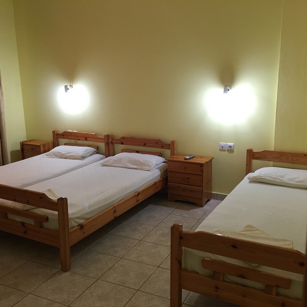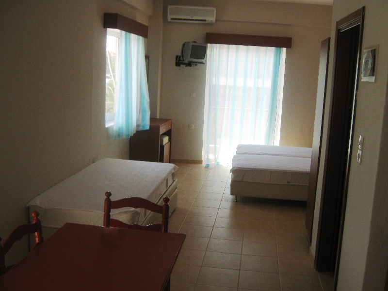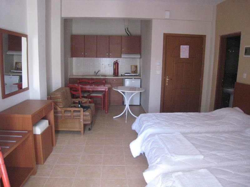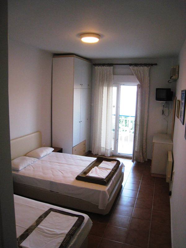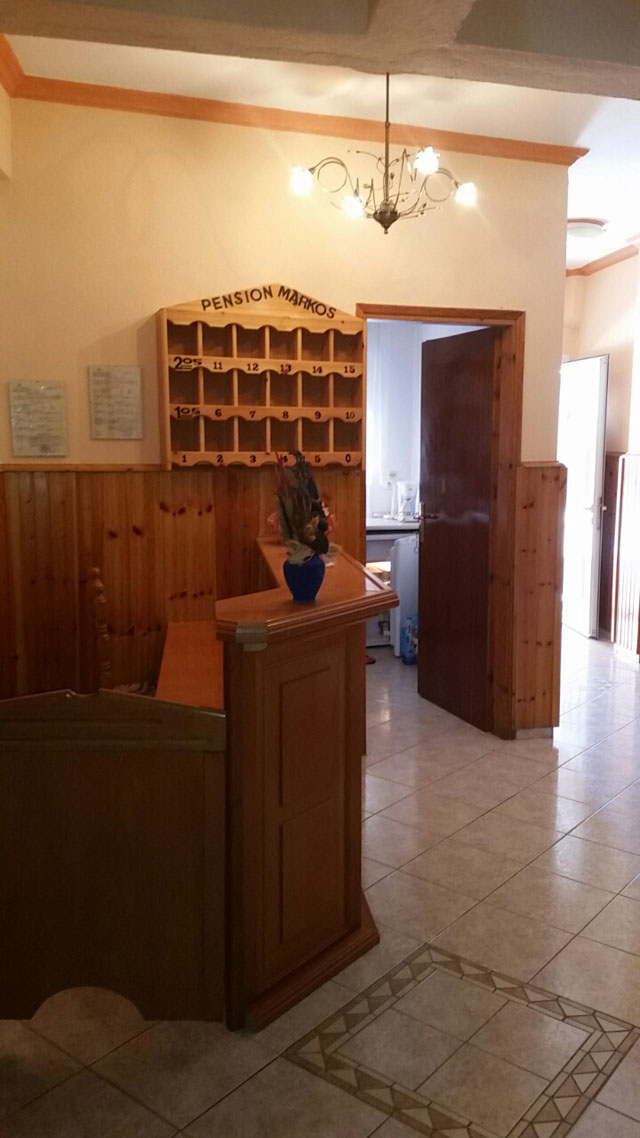 Vila Markos se nalazi u centru mesta pa je gostima u blizini veliki broj mini marketa, mesara, ribarnica, pekara, taverni…Blizina plaže je još jedna od prednosti ove vile. Poseduje dvokrevetne i trokrevetne sobe i studije, a svaka smeštajna jedinica poseduje kompletno opremljenu čajnu kuhinju, kupatilo (tuš/WC), TV i balkon, kao i klima uređaj koji se doplaćuje na licu mesta (5€ dnevno po smeštajnoj jedinici) dok je Wi-Fi internet konekcija besplatna. Doplata za korišćenje klima uređaja nije obavezna. Smeštaj u dvokrevetnim studijima je moguć za dve osobe i jedno dete do 5 godina. Gostima koji borave u sobi na raspolaganju je odvojena kuhinja koju koriste samo gosti te sobe i od iste poseduju ključ. Vila ima peškire.