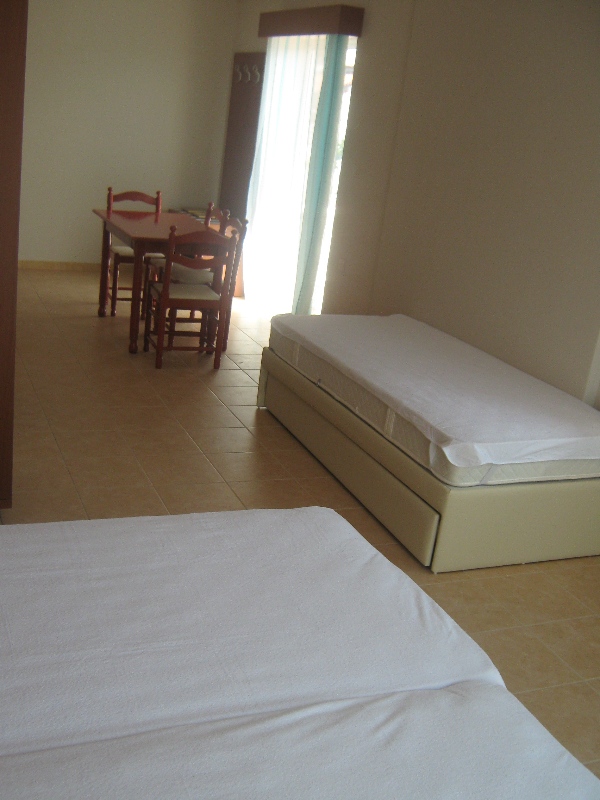 Apartmani u dva nivoa na odličnoj poziciji u Nikitiju, predviđeni za smeštaj maksimalno 6 osoba, idealni za porodično letovanje. Deo su tipskog apartmanskog naselja. Nalaze se na samoj plaži (u apartmanskom naselju)