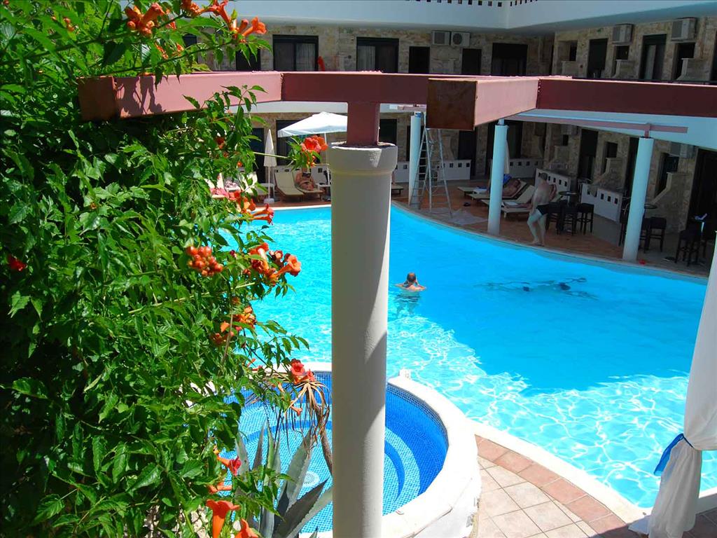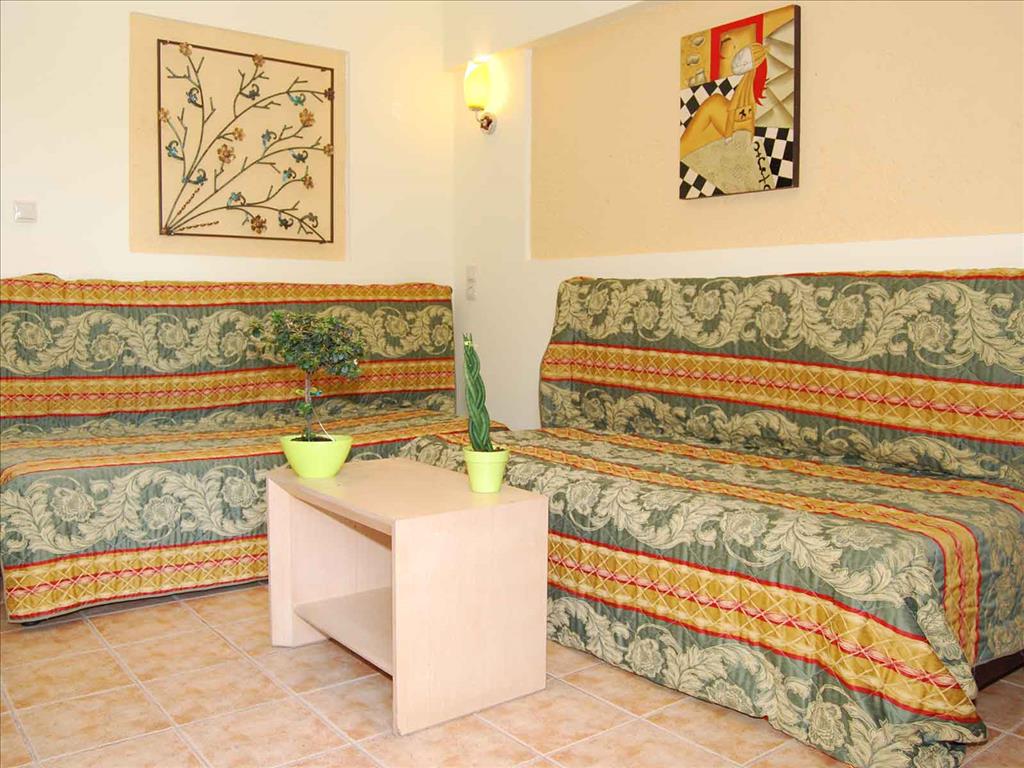 Philoxenia Village je objekat potpuno renoviran 2009.godine. Nalazi se na 2-3 minuta od plaze u mirnoj ulici, 20m od supermarketa, apoteke, restorana i kafica. Potpuno okruzen maslinjakom, Philoxenia Village je kompleks u kome se nalazi basta sa bazenom i pool barom. Pogodan za porodice sa malom decom. Svi studiji su opremljeni kuhinjom, kupatilom, klimom i LCD TV uredjajem, wireless internetom i zasebnim balkonom sa pogledom na bazen ( sve sobe imaju pogled na bazen ). Svi studiji su luksuzno opremljeni i obogaćeni Swarovski detaljima. Sobe imaju peskire.